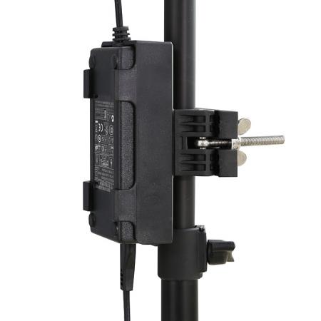 Bei Bedarf können Abschirmklappen (im Lieferumfang) auf der Vorderseite der Leuchte zur Lichtsteuerung befestigt werden. Für die Kühlung der Leuchte ist kein Lüfter notwendig, was den Einsatz im Videobereich besonders interessant macht. Das Netzteil zur Stromversorgung läßt sich über eine Stativ-Halterung schnell und einfach an jedem Studiostativ befestigen. Mit im Lieferumfang enthalten sind drei Filter zur Anpassung der Farbtemperatur auf 3200°K, 4000°K und 4800°K.